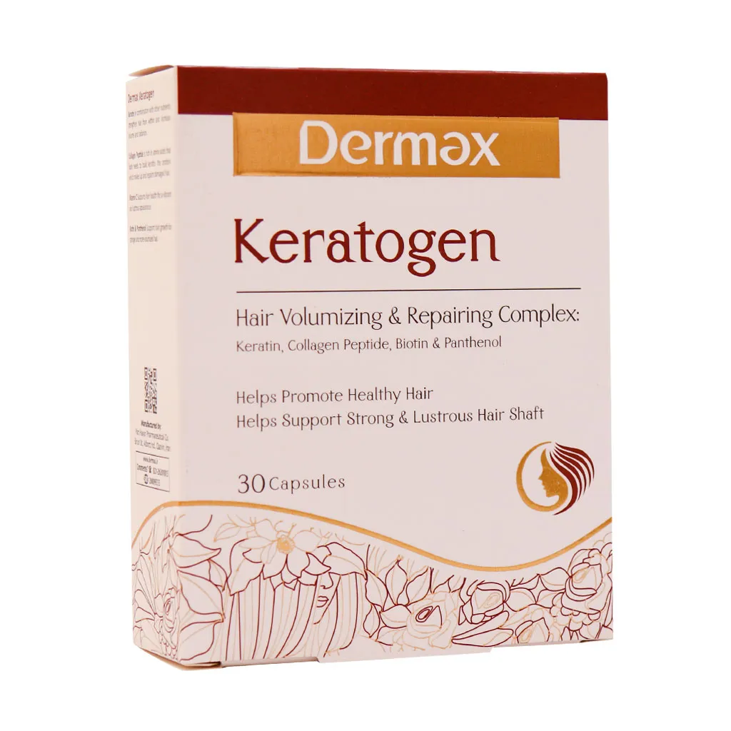 کپسول کراتوژن درمکس یک محصول مراقبت از موی قدرتمند است که با کراتین و کلاژن پپتاید غنی شده و به طور ویژه برای حفظ و تقویت سلامت موهای شما طراحی شده است. این فرمول پیشرفته به تقویت ساقه مو کمک میکند و اطمینان میدهد که موهای شما همچنان قوی، درخشان و پر از زندگی باقی بماند. ناگفته نماند مواد مغذی موجود در درمکس کراتوژن سبب درخشندگی و ضخامت تار مو و همچنین رشد مو میشود. خوشبختانه این فراورده فاقد سویا، شیر، گندم، تخم مرغ، هرگونه شیرین کننده و نگهدارنده است. شما میتوانید با خرید قرص تقویت مو و استفاده از آن، استحکام موهای خود را بالا ببرید و در برابر عوامل محیطی آسیب رسان از موهایتان محافظت کنید.
